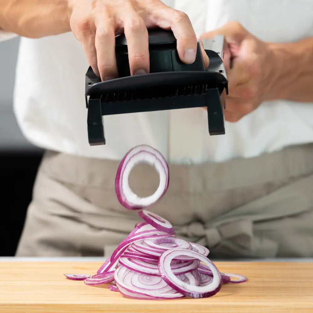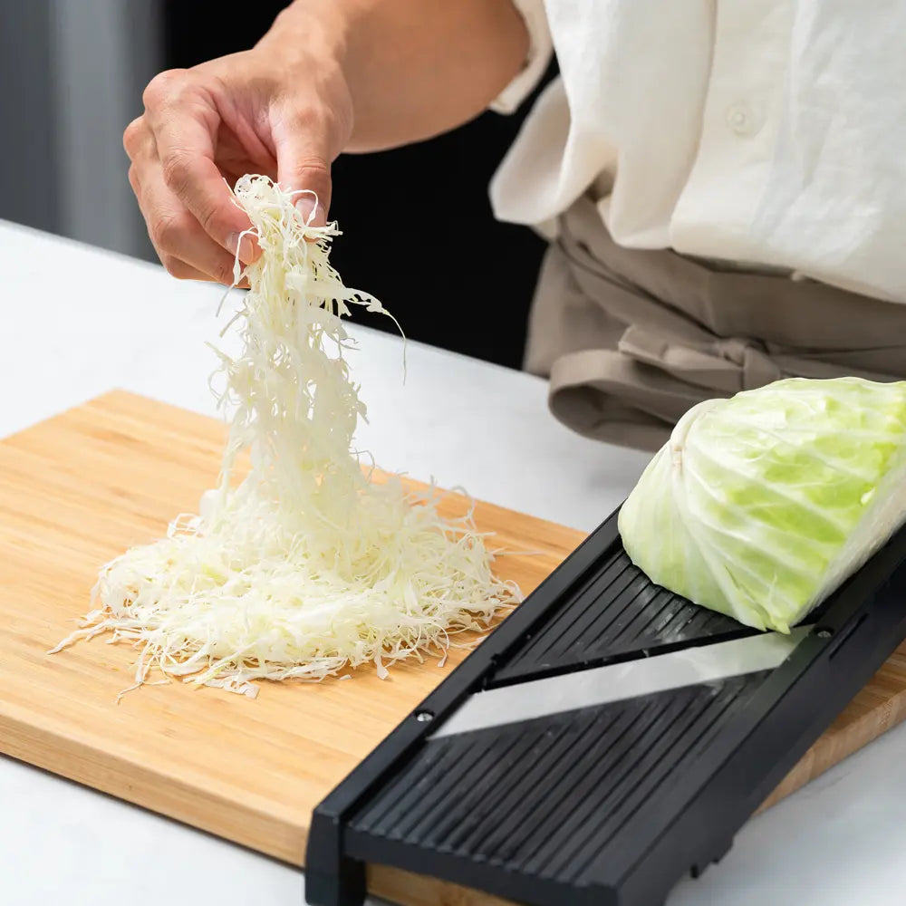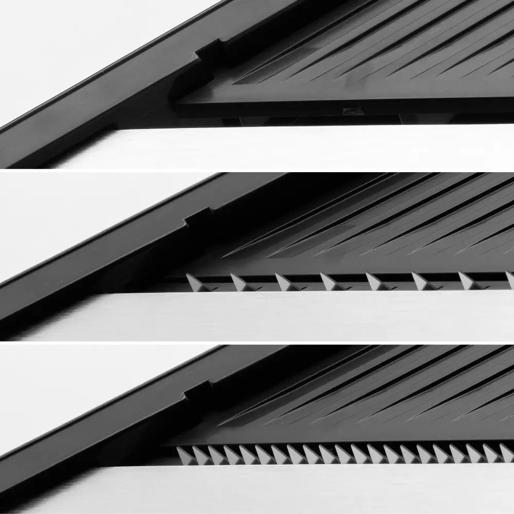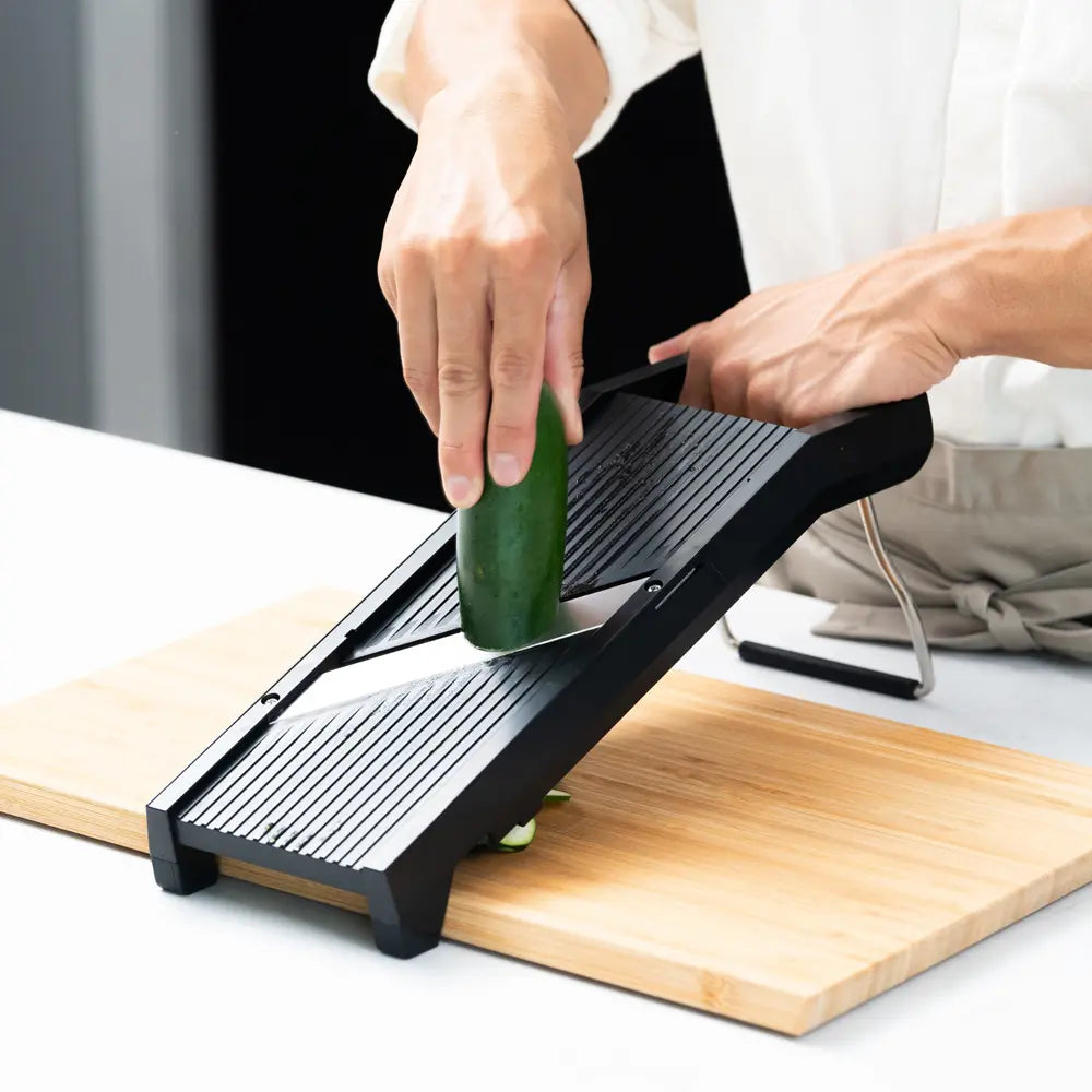 Japán kiemelkedő minőségű zöldségszeletelő 3 pengével és 15 fokozatú vastagságállítással, hogy minden szelet egyenletes és szép legyen. A hátoldali tárcsával 15 fokozatban finomhangolhatod a vastagságot, a julienne pengékkel pedig pillanatok alatt kész a tökéletes csíkozás – gyors, tiszta, élvezetes előkészítés.