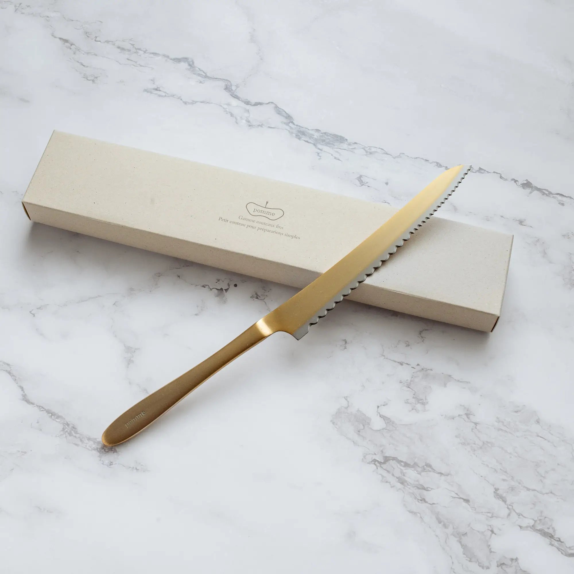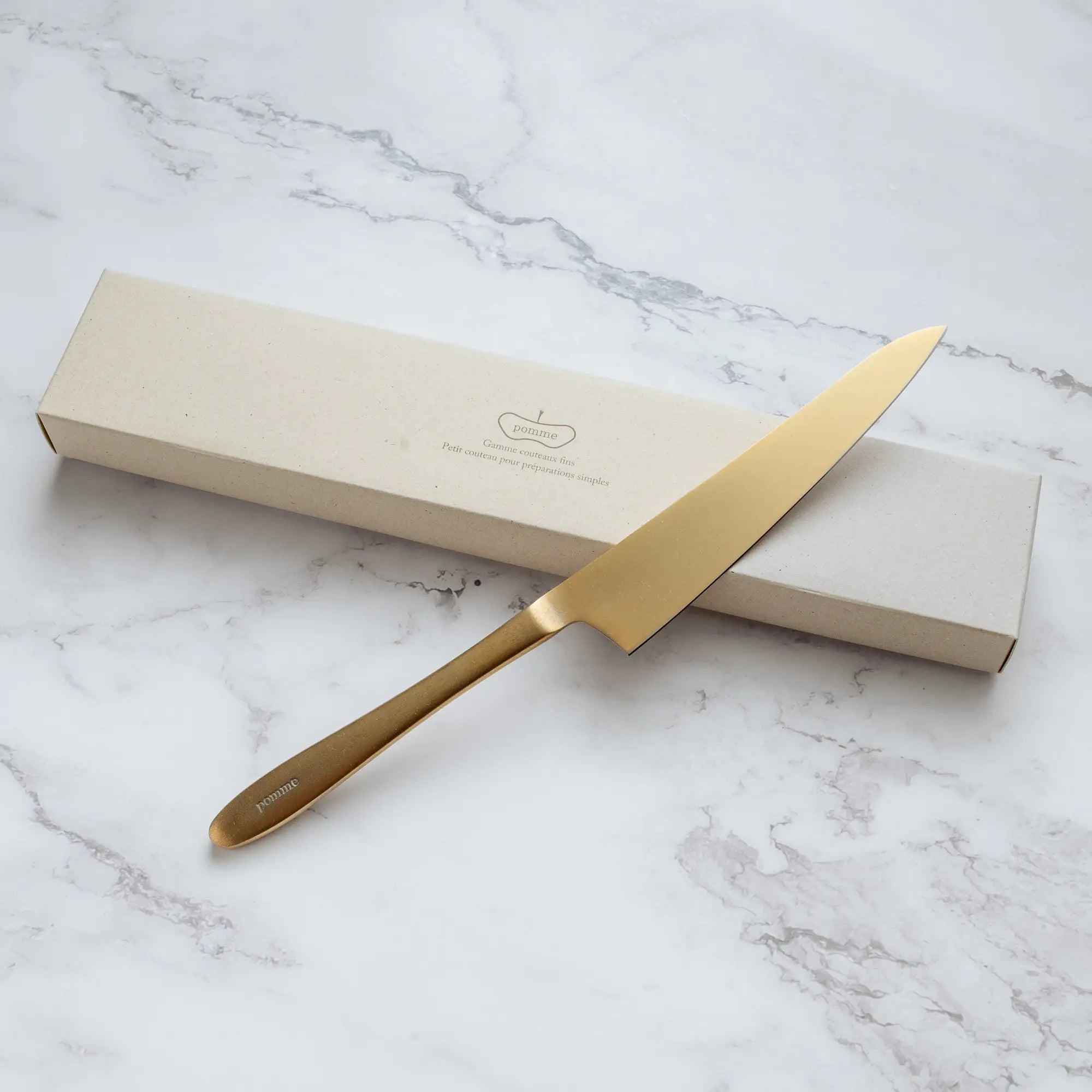 "Akárcsak egy kézzel festett antik tányér vagy egy jól használt szerszám esetében, minden egyes „pomme kést” kézzel, egyenként gravírozunk, csiszolunk és élezünk, hogy használat közben tökéletes kényelmet nyújtson."